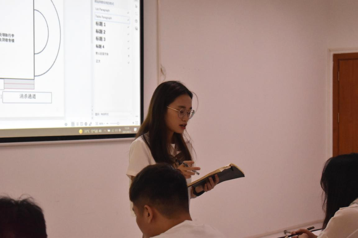 会议开始,第十届团总支学生会副主席顾靖业发言,他详细地为志愿者们介绍了此次迎新工作的任务细节与注意事项。根据迎新路线,此次迎新工作总结为“三点一线”,即此次迎新将围绕着行李寄存处、新生报到处、新生宿舍三个地点展开,并且在原有的三个小组上增设机动组以应对突发情况。