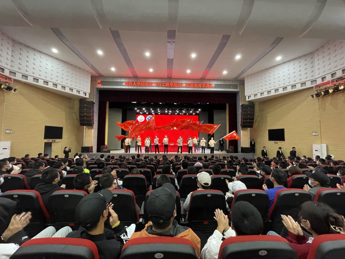 本网讯(汪城炜)10月12日下午,我院2021级新生开学典礼在音舞演奏厅隆重举行。参与此次开学典礼的有学院领导、各系部主任、辅导员、新生班主任及2021级全体新生。本次开学典礼由院党委副书记王伟主持。